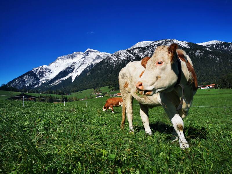 Mit Blick auf den Guffert unserem Hausberg können die Rinder bei bestem Futter die Sonne genießen!